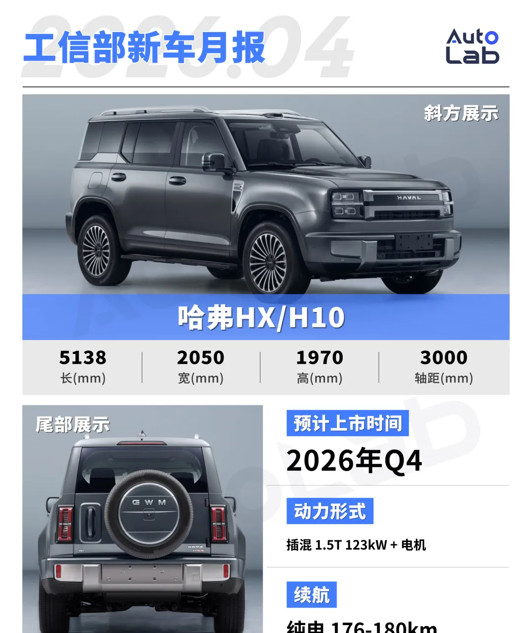 哈弗全新旗舰还在征名阶段,暂时叫HX或H10。它是方盒子造型,提供五座和六座,背着小书包后备胎,车长接近5.3米。动力给了1.5T和2.0T两套Hi4插混,配42.8度电池,纯电续航最高180km。你会发现,长城现在把不同风格切得很开,魏牌偏精致家用,哈弗则更强调存在感。