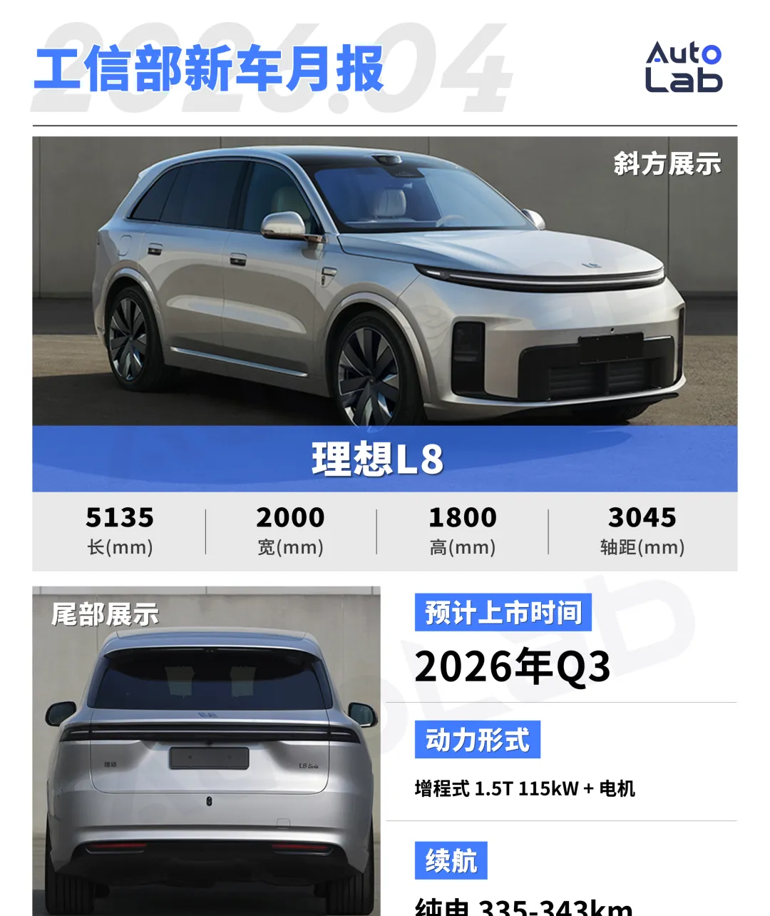 理想这次也有新动作,全新理想L8 Livis正式进入工信部目录。它的外观思路和即将上市的L9 Livis接近,双拼色这些元素也都延续下来,只是因为车身更小,整体看着更紧凑、也更精致。