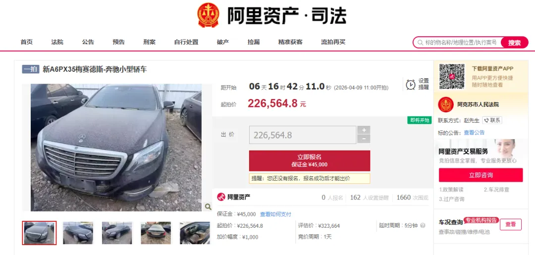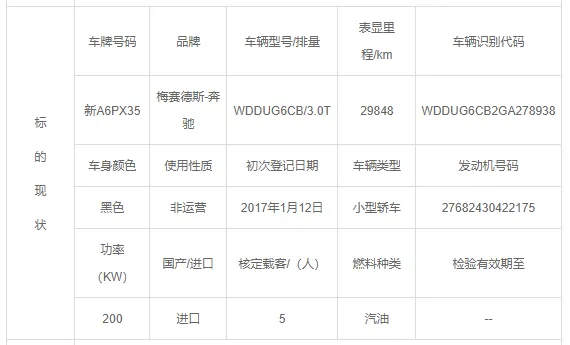 拍卖标的:新A6PX35梅赛德斯-奔驰小型轿车