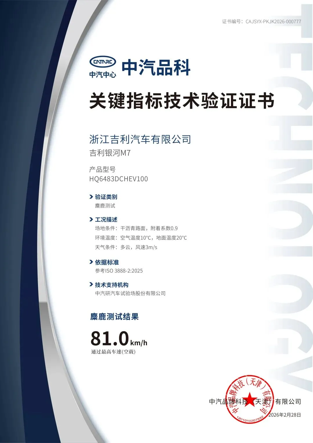 银河M7有点不一样,麋鹿测试81km/h,再配上AI底盘、One-Box制动、预售期免费送可变阻尼悬架。