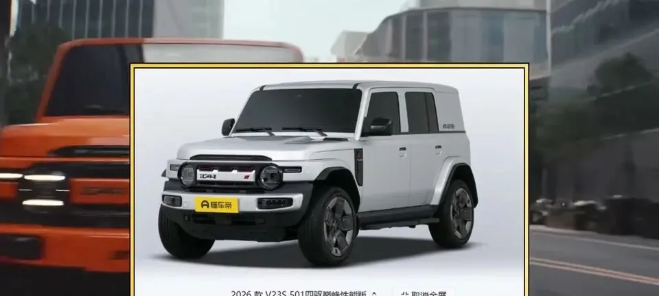 V23,今年9月刚发布了2026款新车,售价12万起步,整体造型主打越野风味,最小离地间隙210毫米,在铺装烂路、轻度非铺装场景下,通过性表现不错。比较有用的是,它支持6kW的对外放电,这对露营、户外用电确实挺实在。