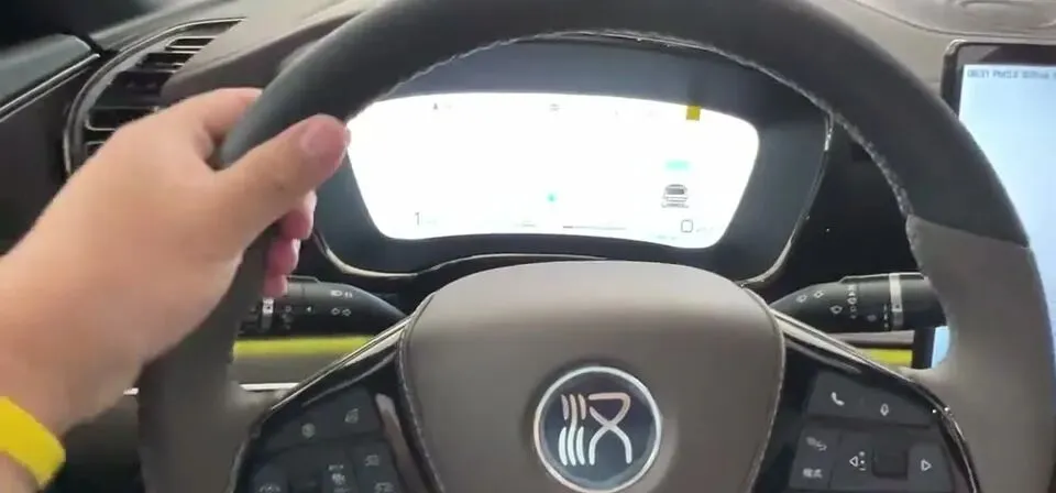 比亚迪汉DM-i冠军版驾驶舱,双色方向盘。