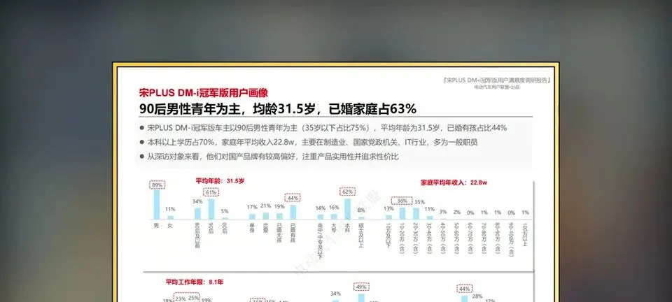 用户画像上,宋PLUS车主多以90后为主,平均年龄31.5岁,很多是已婚有孩、首次购车,老车主增换购比例也不低,这说明它的“稳妥牌”确实打得准。很多人甚至是直接冲着口碑去买宋PLUS,他们也没选错,它在这个价位就是一台各方面都不错的水桶车。