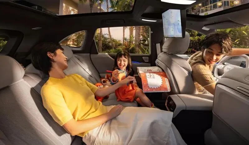 此外,至境E7搭载与至境L7同款的高通SA8775P芯片,支持50英寸AR-HUD、双联屏等智能交互功能。同时其后排配备了15.6英寸二排影院屏,配合20扬声器,为孩子打造沉浸式视听体验。至于当下消费者要求的车内冰箱,E7也给安排上了,冷暖箱的内胆融入银离子材质,让其有效抑菌。另外,别克至境 E7 搭载了最新一代豆包大模型,能够更智能的与乘客和孩子交流,支持多轮对话、情感识别与儿童友好交互逻辑。