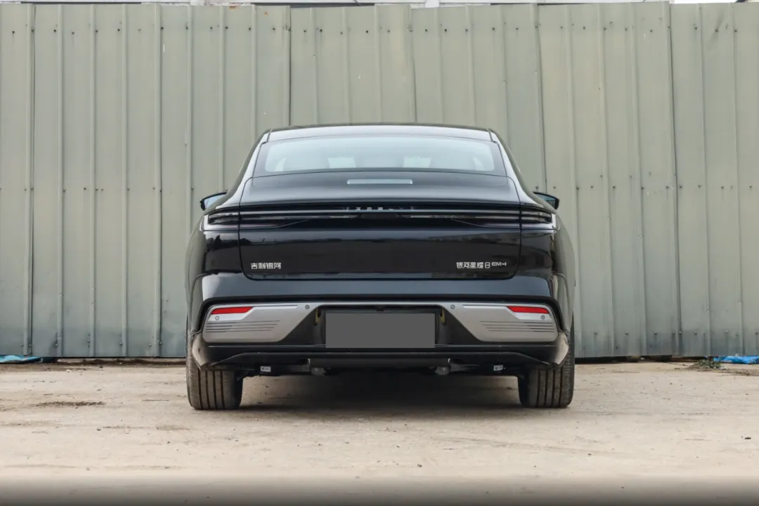 尾部设计在成熟的基础上融入了银河家族的独立语言,尾灯设计灵感源自“旭日东升”,点亮后呈现渐变或层次化光效,与前脸形成呼应内部采用点阵式LED光源,配合较为硬朗的折角线条,增强夜间辨识度,也提升车尾层次感。整体来看,2026款吉利星耀8 PHEV的外观设计成功融合了前卫、运动与精致元素,但车辆底盘离地间隙仅为12-14厘米,这一设计在提升视觉稳定感的同时,也降低了通过性,通过减速带、坑洼路面或U型路口时需要格外谨慎,存在前铲蹭底的风险。‌