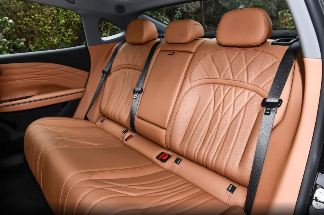 尺寸方面,新车长宽高分别为5018/1918/1480mm,轴距为2928mm,空间表现与老款保持一致,在满足家庭多成员出行需求方面展现出显著优势,同时在细节上存在可优化的空间。实测下来,该车前后排乘坐空间总体宽敞,身高180cm的乘客坐在后排,后排腿部空间可达两拳左右,但受溜背造型和底部电池布局影响,车厢地板整体抬升,导致后排垂直头部空间较为局促。