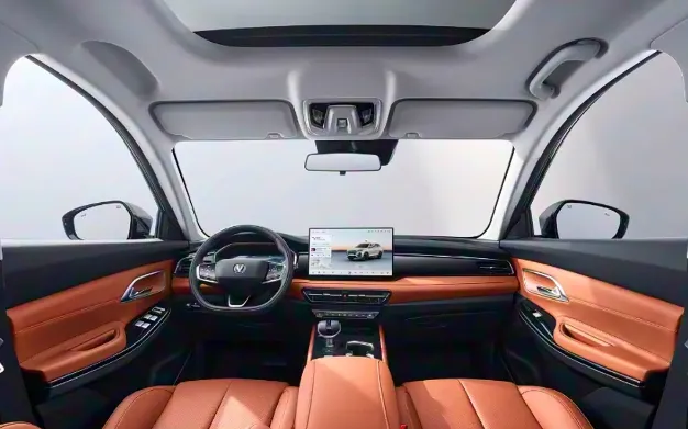 门一拉开,视线绝对第一时间被那块14.6英寸的悬浮大屏**给吸过去。这玩意儿放在7万多的车上,确实有点降维打击的意思。不过必须得吐槽一句——别高兴太早。你要真买那个7.59万的手动挡版本,中控屏幕直接缩水成3.5英寸,看着跟计算器似的,搭配的还是机械炮筒仪表盘。这点长安玩得挺明白,预算不够,面子自然也得省着点给。