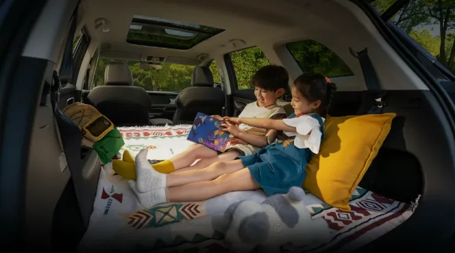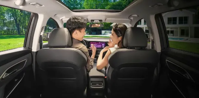 5座版后备箱常规就有780升,把后排一放倒,简直就是个小货车。7座版采用的是2+3+2的布局,第二排座椅支持前后滑动和靠背调节,能给第三排让出不少空间。不过有一说一,第三排更多是应急用的。让一个成年人长途坐第三排,腿肯定是憋屈的。但放倒之后整个后备箱变成纯平空间,拉大件东西或者自驾游当床车,那是真的爽。