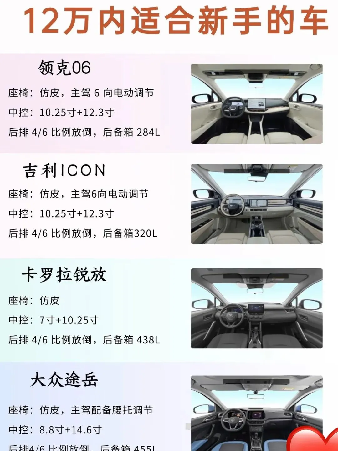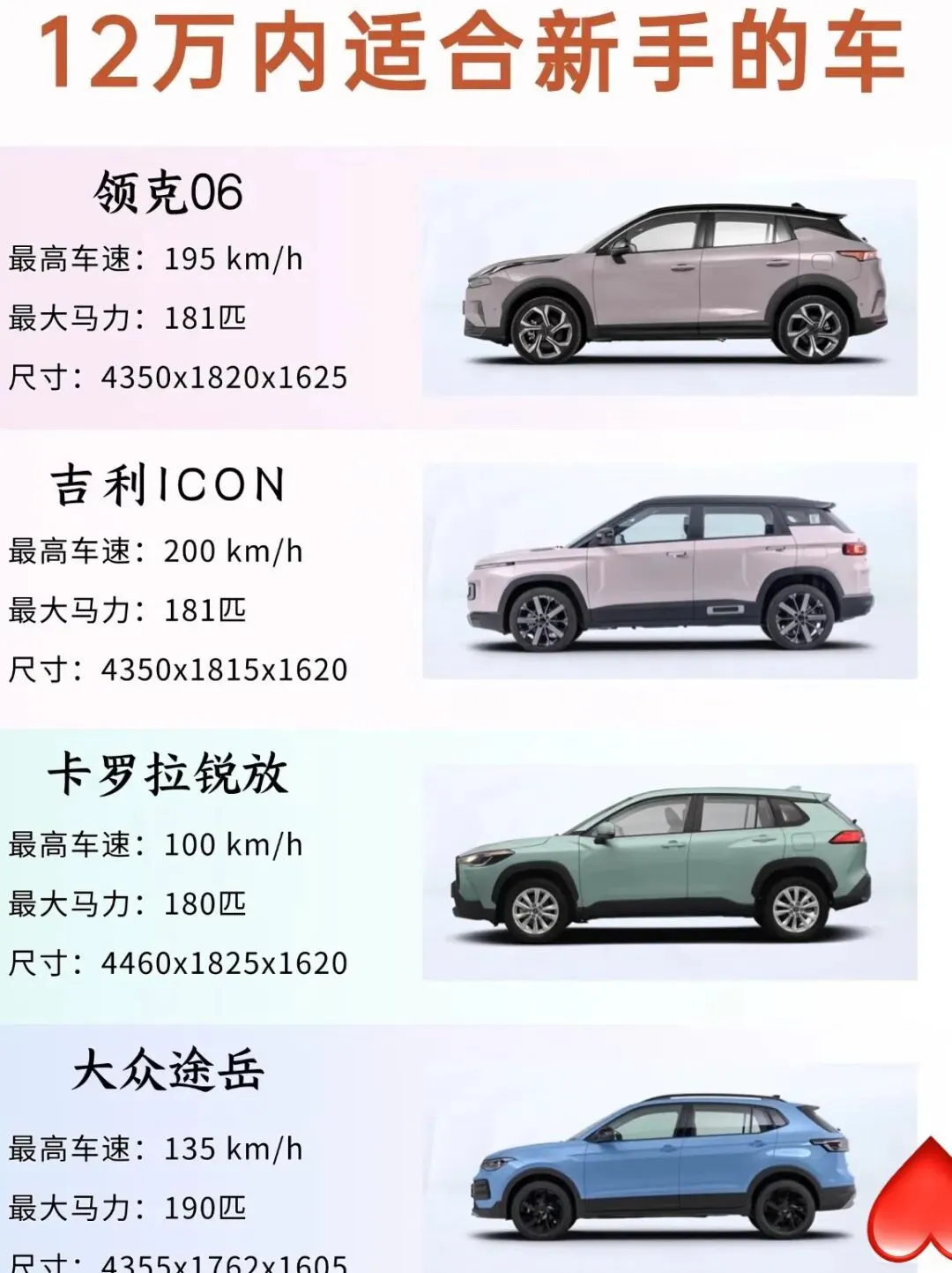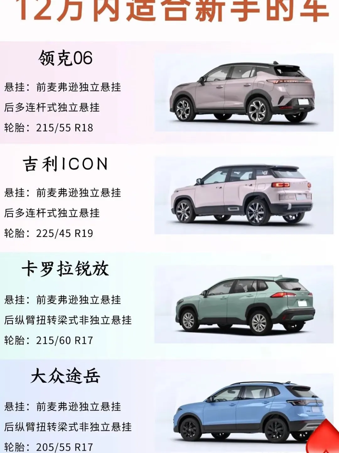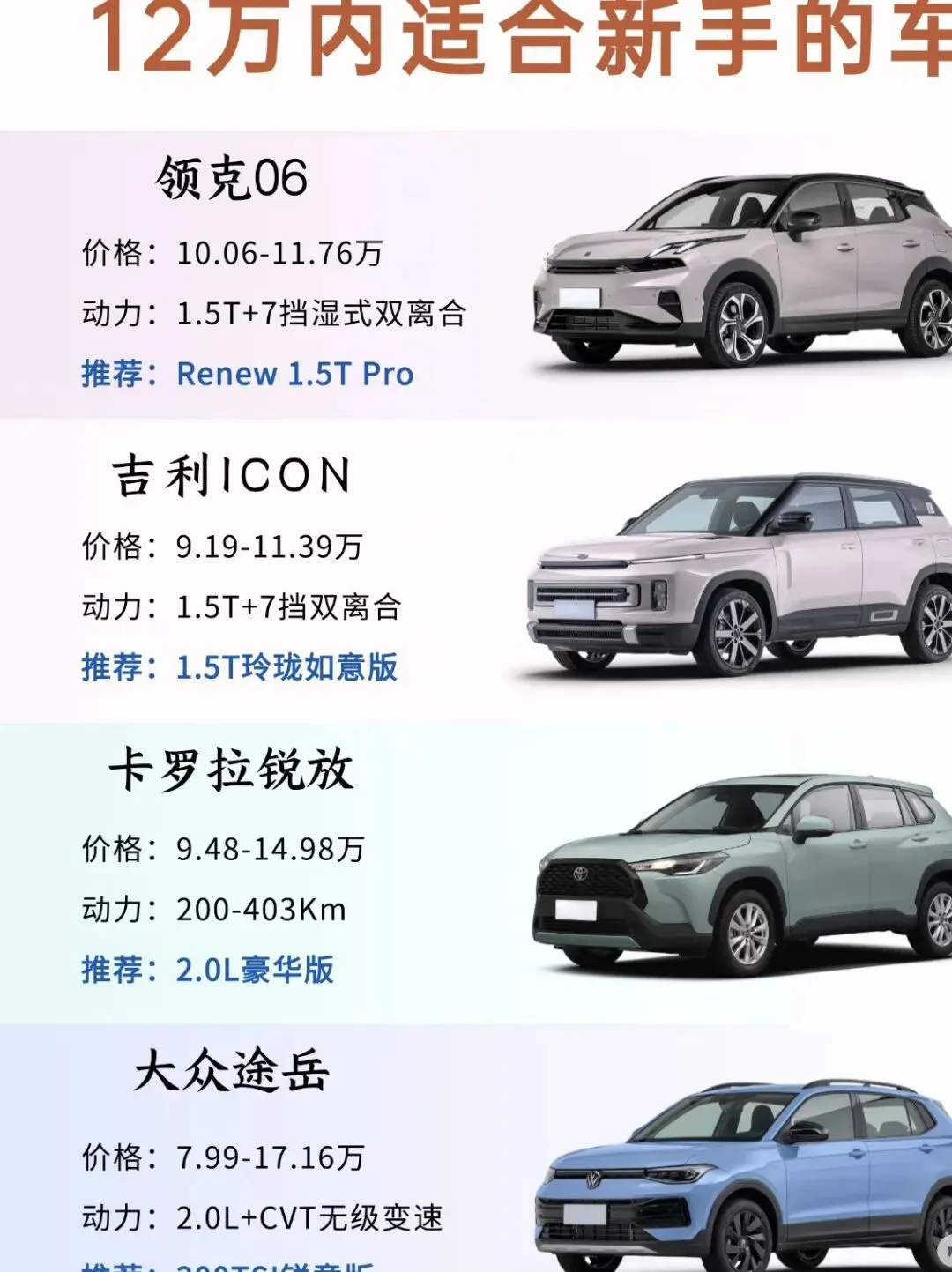 😎总结一下,🔺追求颜值配置选吉利 ICON,🔺德系性价比控选大众途岳,🔺科技潮酷女孩选领克06Remix,🔺家用务实派选卡罗拉锐放,省油耐造!