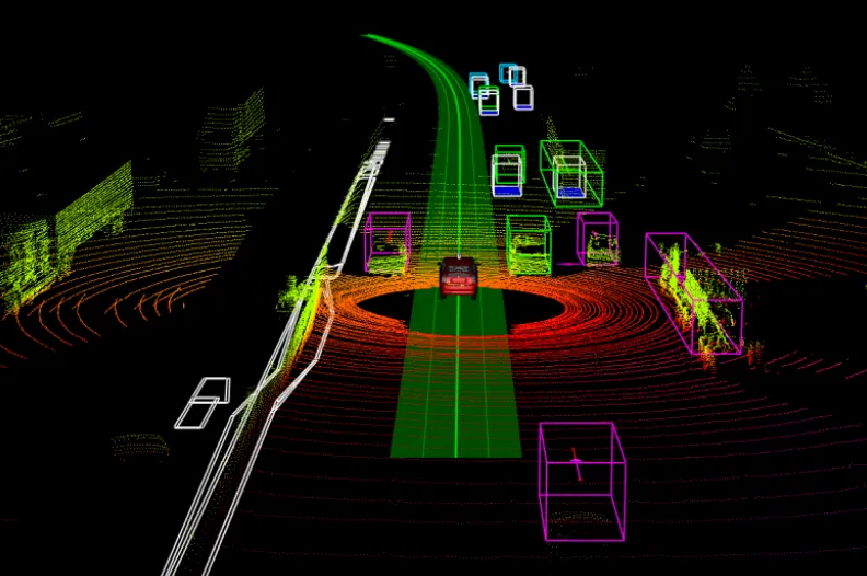 与扫地机器人的ToF完全相同。发射激光脉冲,测量反射回来的时间,直接算出距离,能直接得到3D点云数据。国内很多新能源汽车厂商都已经应用了激光雷达,用于特殊场景、侧向补盲。成本相对较高(虽然已大幅下降);在雨、雪、雾天气下性能会下降