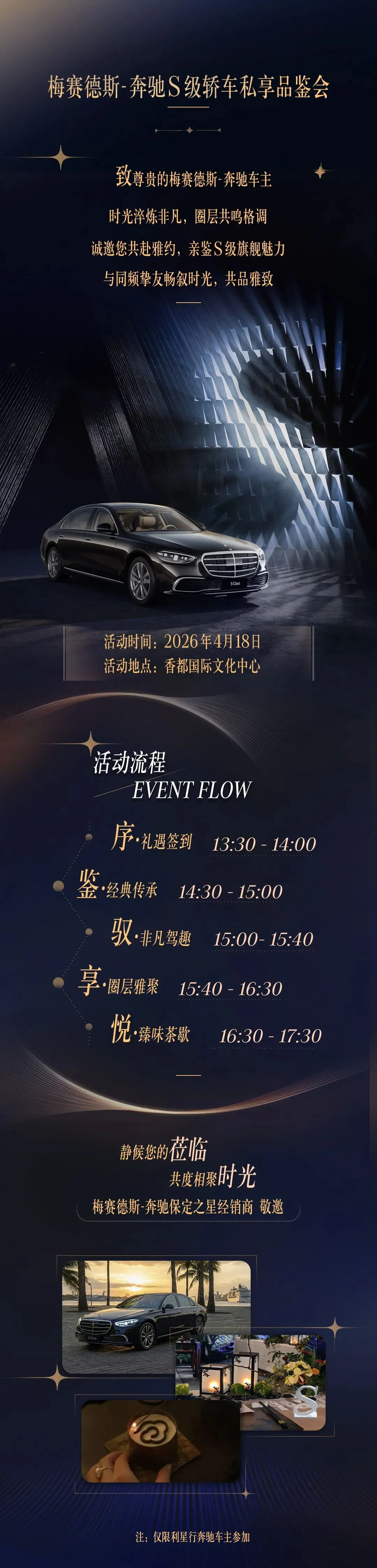 >梅赛德斯-奔驰S级轿车私享品鉴会活动招募中