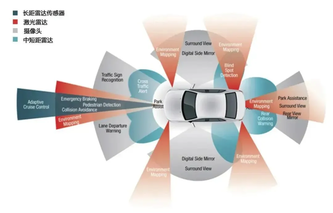 核心逻辑: 摄像头有盲区,那就加上激光雷达做三维扫描,再加上毫米波雷达做冗余。三层防护,安全第一。