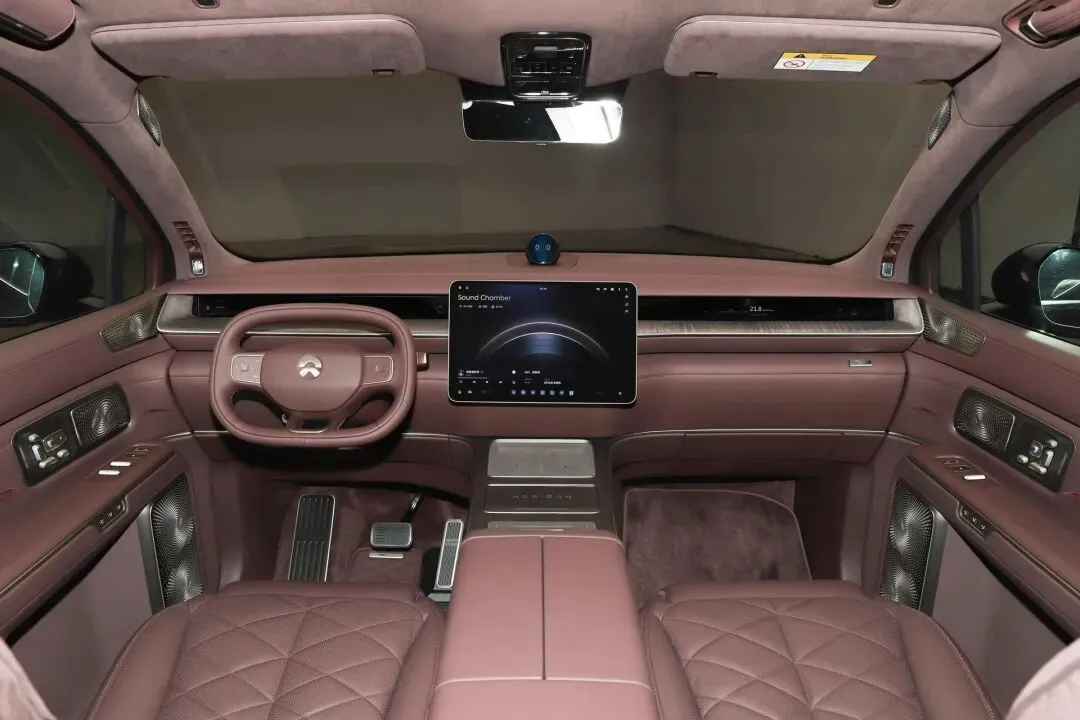 进入蔚来ES9的车内会感受到精细的做工和厚道的用料,中控屏幕的边框很窄,UI界面也很简洁,车机系统的反应速度很快,功能也很全面,用起来比较方便。车内几乎全部使用真皮包裹,中控台部分增加了贯穿式的木纹装饰,为车内营造出了豪华感。