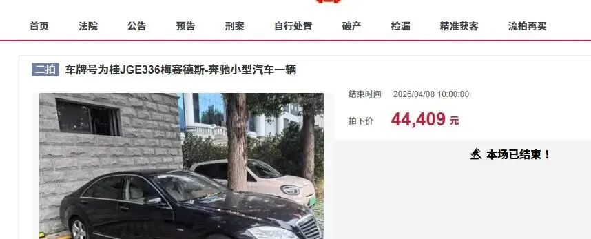 此次拍卖,起拍价为4.4409万元,不到5万元,最终只有一个人报名竞拍,以起拍价就拿下了这辆二手豪车。