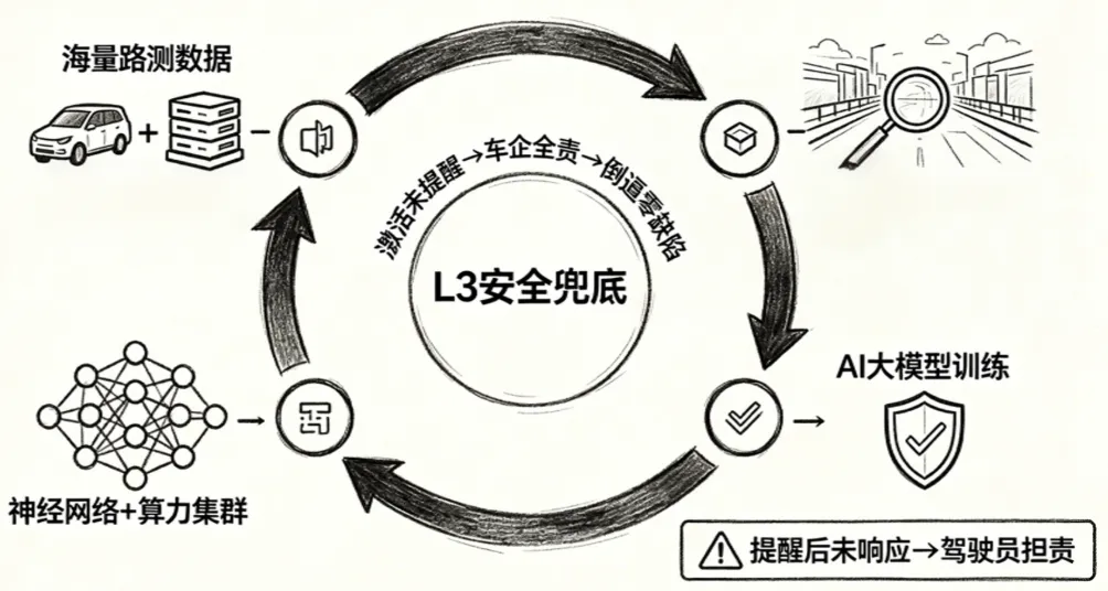 10秒接管窗口期是L3安全兜底的最后防线,这一时间基于人体工程学研究设定,人类从放松状态恢复驾驶掌控需3-10秒(《汽车工程》,2026)。政策明确:系统激活未提醒接管,事故车企全责;提醒后10秒未响应,驾驶员全责。配套标准同步落地,2026年2月工信部发布的《智能网联汽车自动驾驶系统安全要求》征求意见稿,明确了L3的强制性安全标准。