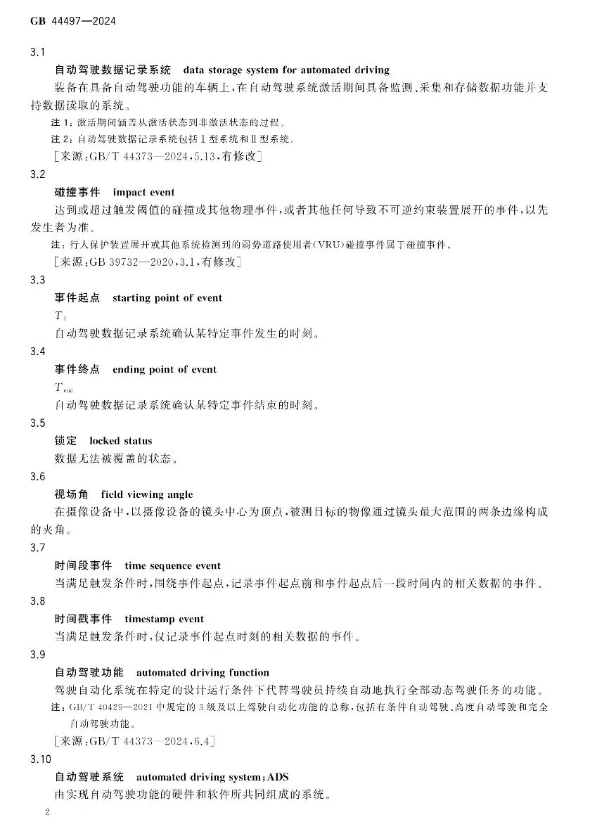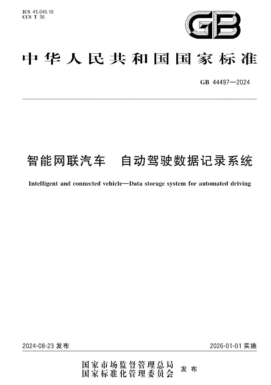 [汽车法规]智能网联汽车 自动驾驶数据记录系统