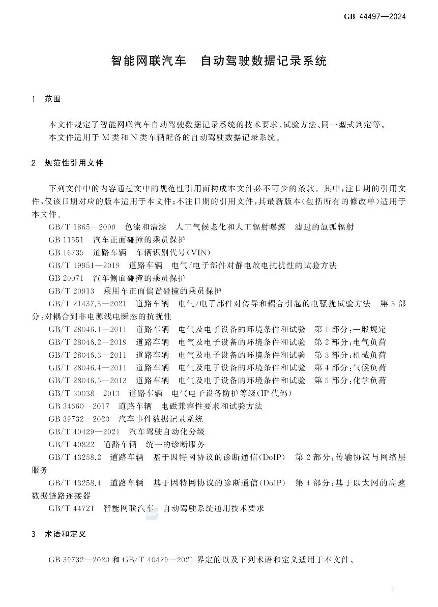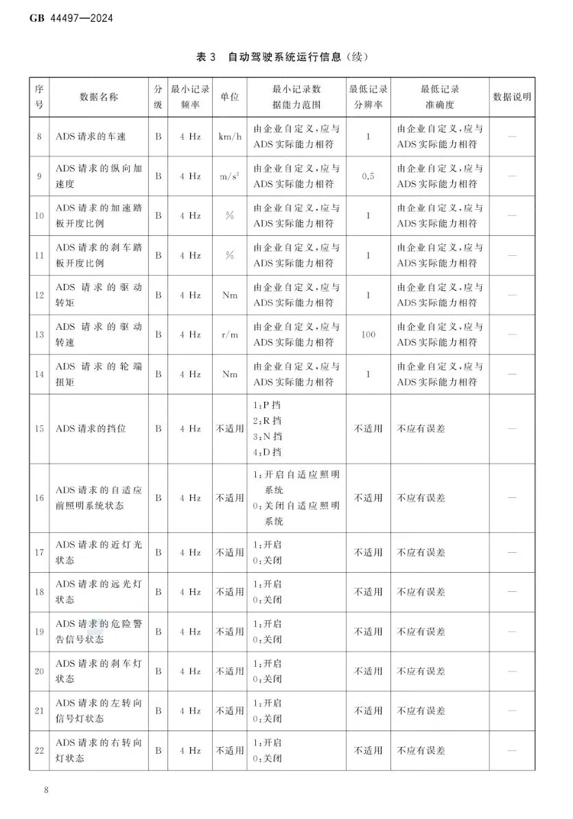 >[汽车法规]智能网联汽车 自动驾驶数据记录系统