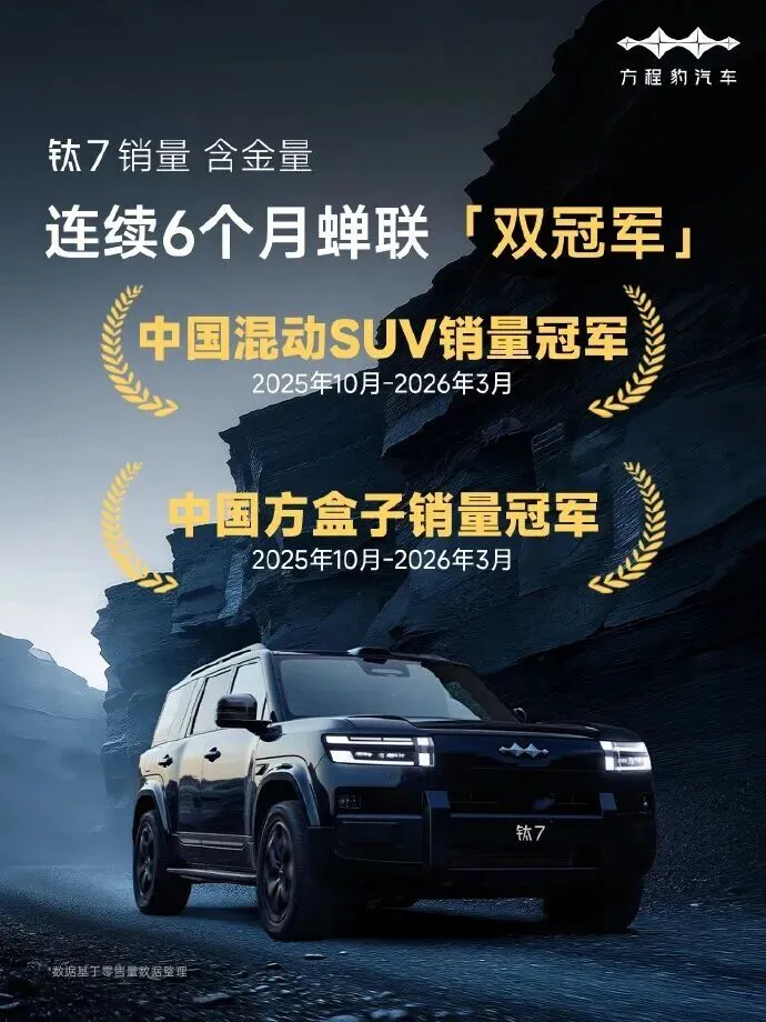 从上市火速破万,到月销3万+巅峰输出,再到连续半年双冠封神,方程豹钛7靠实力站稳脚跟;如今闪充版接力登场补齐短板,想必还会再掀一轮抢购热潮。