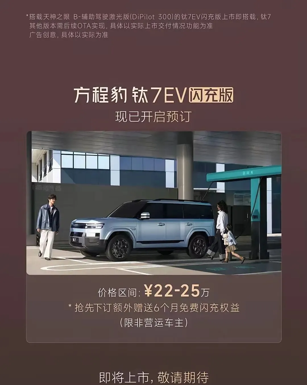 从“可油可电”的混动,到“9分钟满电”的纯电闪充,方程豹钛7 EV闪充版不仅是一款车,更是新能源出行的效率革命。它用技术打破纯电硬派SUV的壁垒,让“长途自驾、越野探险、城市通勤”无焦虑。4月28日正式上市,22万起预售,一场关于纯电出行的新风暴,即将来袭。