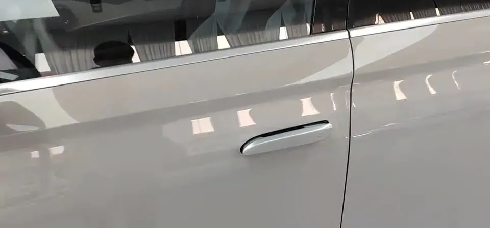 它用了弹出式门把手,再加上后排隐私玻璃,整体高级感是在线的。