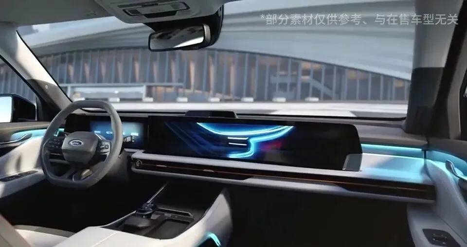 座舱层面主打12.3英寸全液晶仪表+27英寸4K超广域巨幅屏,搭载福特智行互联系统,支持语音控制,CarPlay、CarLife,基础功能够用,主打一个实用不花哨。