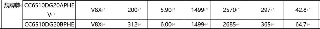 核心动力系统上,魏牌V8X采用的是1.5T的插混系统,而魏牌V9X是2.0T的插混系统,这还是明显不一样的。1.5T发动机型号是E15BE,就是魏牌蓝山的同款发动机,最大功率125kW,电机功率还不知道,不过消费者可以参考魏牌蓝山。电池拥有两种容量:42.8kWh和64.7kWh,对应的WLTC纯电续航是200km、312km,这纯电续航属于长的类型,毕竟这是WLTC标准,馈电油耗上,百公里5.9L(6L),值得注意的是,工信部申报的电池有磷酸铁锂电池和三元锂电池,到时低配是磷酸铁锂电池,高配是三元锂电池。这套动力系统消费者参考蓝山就行。