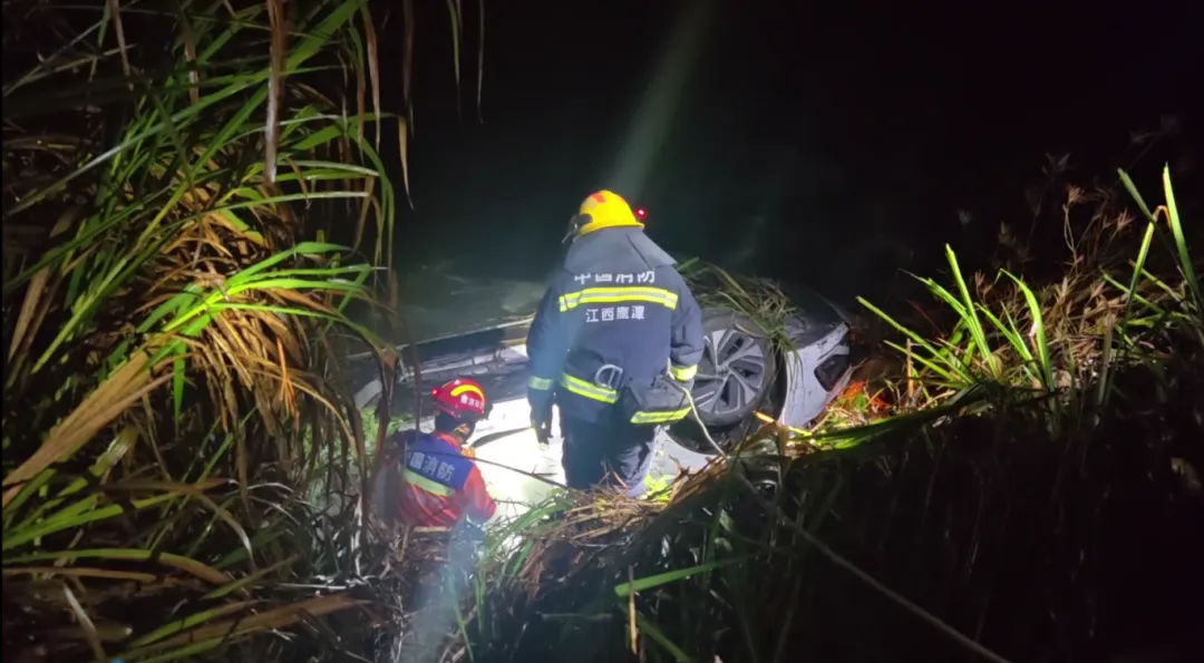 鹰潭市一辆轿车不慎翻入小溪