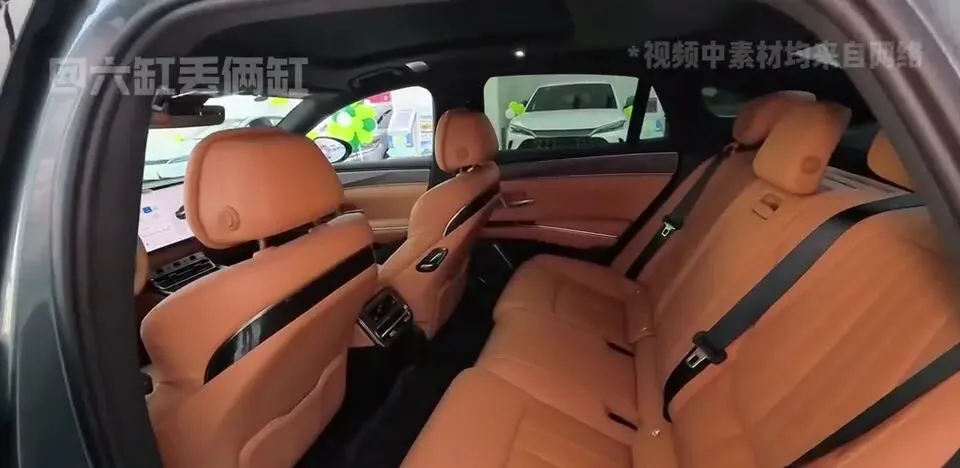 内饰有6色可选,大面积真皮和绒布用料看着非常豪华,布局也算上乘。掀背设计让后备箱很大,后排腿部宽敞,头部也不压抑。静谧感是这台车的加分项,得益于无框车门的双层夹胶玻璃,风噪和路噪都被控制得很好。