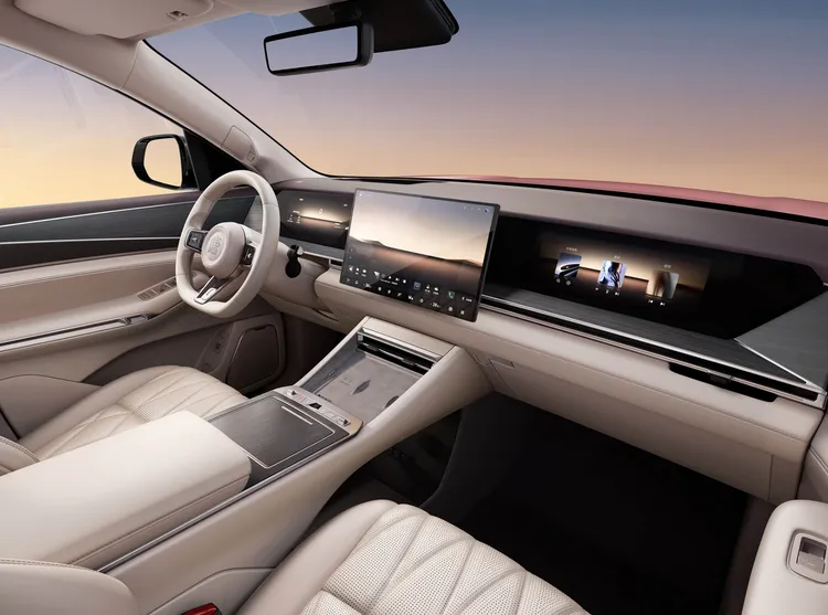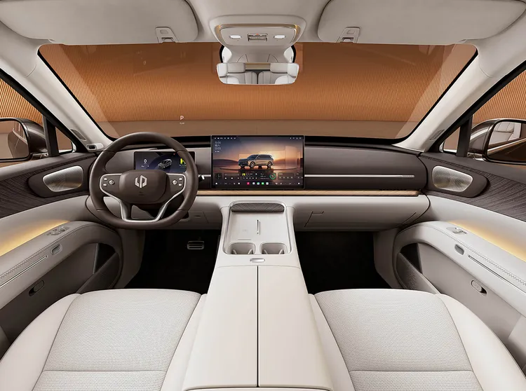纯电双电机版综合功率410kW,三电机版功率540千瓦,配备1000V平台+宁德时代115kWh大电池,纯电续航720公里。底盘上搭载前双叉臂+后五连杆独立悬架,并配备双腔闭式空悬+CDC减振阻尼可调,三电机版还可实现圆规掉头。