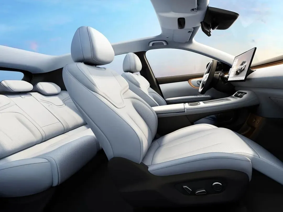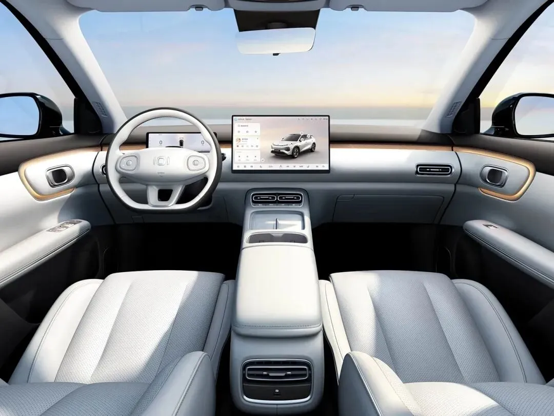 内饰方面,风格以简洁为主,配备了10.17英寸液晶仪表盘和14.6英寸中控屏幕(顶配和次顶配车型为15.6英寸中控屏幕),天枢智能座舱支持高德地图、CarPlay、 Carlink、HUAWEI HiCar、双区域语音识别控制、车载KTV、4G车联网、手机APP远程功能和OTA升级等,顶配车型配备了天玑P1 Ultra车机芯片,拥有16GB内存和128GB存储,保证系统运行的流畅度。至于其他车型搭载了什么车机芯片,这一点厂家倒是没有标注。