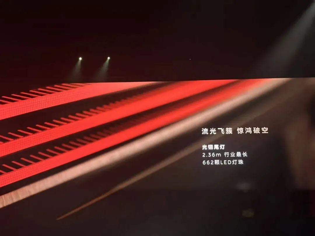 车尾采用SuperRed超红LED粒子组成的贯穿式灯带,灯带拥有2.36m的长度内置662颗LED灯珠。并使用缎光高亮饰条和拉丝金属点缀,尾部还具有隐藏式后雨刷、后排隐私玻璃等配置。空间方面,行李厢常规容积600L(包含123L隐藏空间),三排座椅放倒后可扩展至1586L。