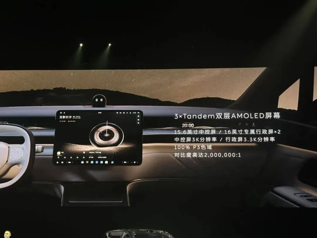 内饰采用环抱式座舱设计,搭载15.6英寸AMOLED悬浮中控屏,拥有3K分辨率。48英寸Skyline天际线屏幕,为10K分辨率。第二排搭载两块16英寸行政屏幕拥有3.3K分辨率。内置SkyOS·天枢整车全域操作系统,实现车控、智驾、座舱功能的全面打通。车内材质方面,将会提供Nappa真皮和枫影真木饰板。