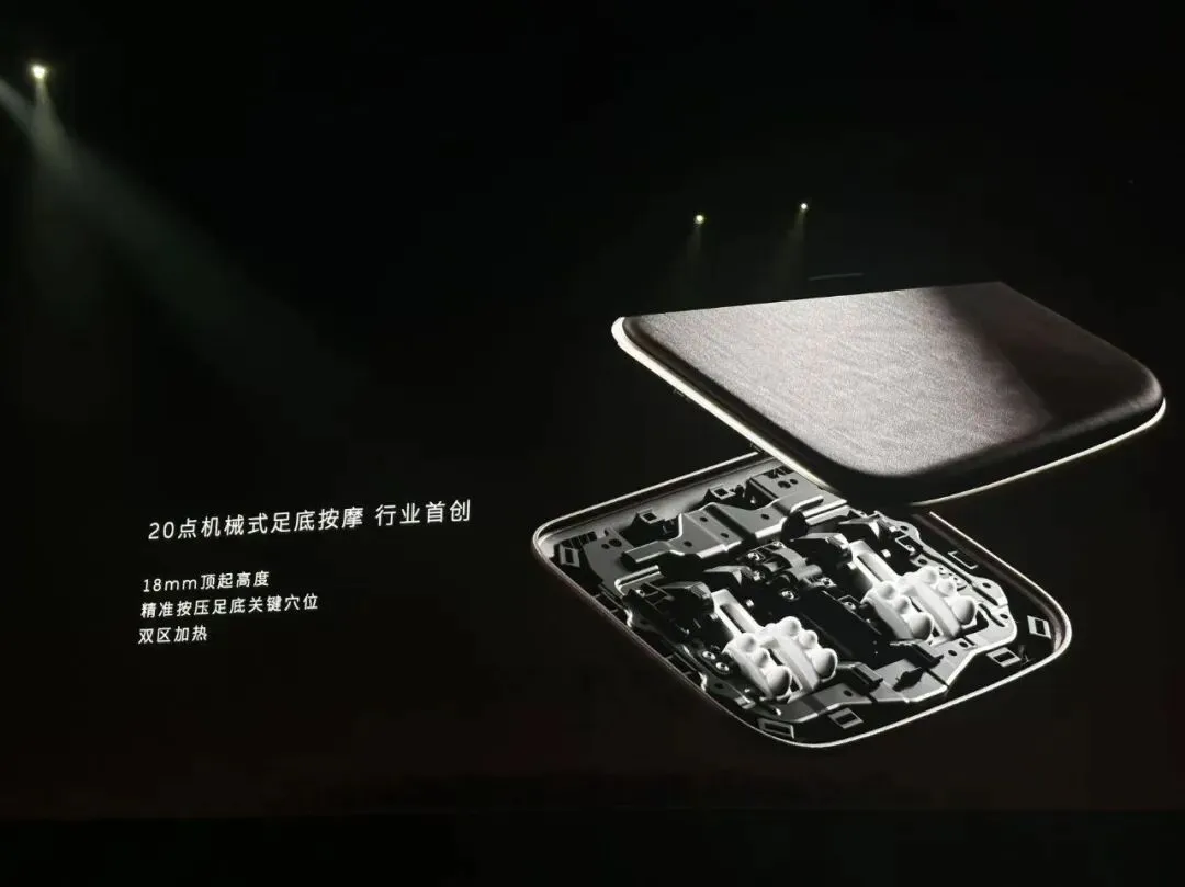 新车还搭载了机械师的20点足底按摩,并且具备双区加热功能。
