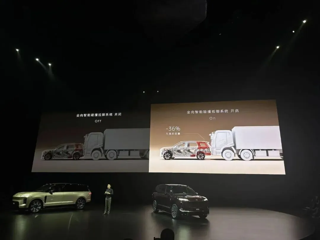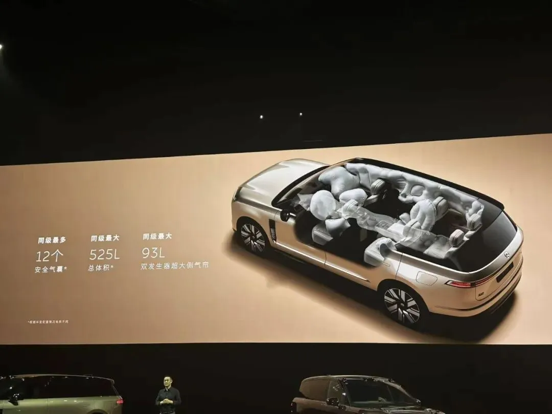 被动安全方面,新车采用笼式安全车身,白车身铝合金和超高强度钢占比达到了91%,全车还采用了四处一体式大压铸件。安全气囊方面,新车全车共有12个安全气囊,并首次在第二排设计了远端气囊。并且针对零重力座椅碰撞安全进行了优化,提升了零重力座椅展开时的碰撞安全。