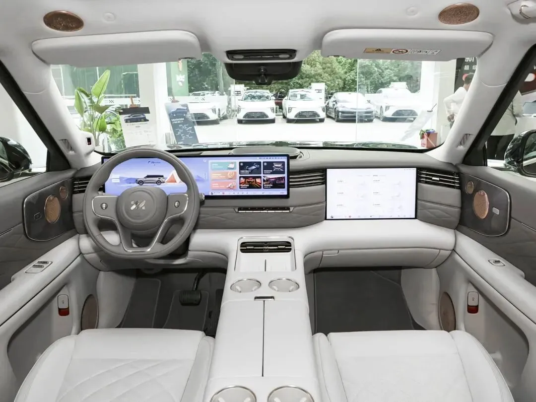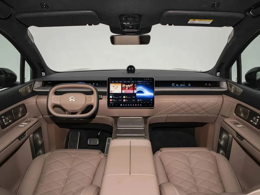 凯迪拉克VISTIQ凯威德,是这6台车里唯一一台美系纯电大型SUV,3月份已经开启盲订,定位略高于凯迪拉克IQ锐歌,主打的就是“美系豪华+纯电出行”,适合喜欢美系车、有豪华品牌情怀的奶爸。外观上,它沿用了凯迪拉克家族化的设计理念,钻石切割线条,肌肉感十足,辨识度很高,自带美系车的大气与豪华。车身尺寸5222/2026/1799mm,轴距3094mm,三排六座布局,空间表现不错,第二排独立电动座椅,舒适度也很好,33英寸弧形大联屏,科技感和豪华感兼顾。动力上,它推出单电机和双电机两个版本,单电机最大功率255kW,双电机前后功率分别是183kW和260kW,动力够用,预计会匹配超100kWh的电池组,续航表现应该不会让人失望。智驾方面,搭载Momenta高阶智驾方案,激光雷达采用舱内隐藏式设计,既美观又实用。个人见解:凯迪拉克VISTIQ凯威德的优势在于“美系豪华+纯电”,适合喜欢美系车、追求豪华质感,同时又想体验纯电出行的奶爸。但美系纯电车型的保值率,一直不如国产新能源,而且它的智驾系统,对比华为、小鹏等品牌,可能还有一定的差距,情怀大于实用性。6. 蔚来ES9:高端服务的“天花板”,注重体验选它