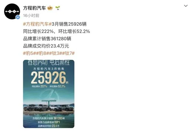 方程豹品牌在3月份单月销售量达到25926辆,相比去年同期增长了222%。累计销量已经突破36.1万台,平均成交价为23.4万元,在高端新能源细分市场中占据了一席之地。方程豹镁7的谍照刚一公布就被网友戏称为“小米SU7最强对手”。的确产品定义了细分市场,设计决定着第一眼印象,这两方面镁7都做得非常到位。
