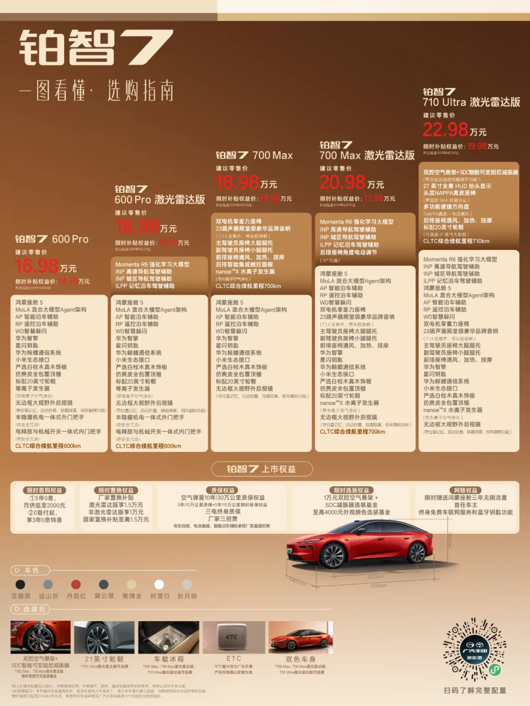 在700Max基础上增加:MomentaR6激光雷达高阶智驾系统,限时免费选装双腔空气悬架+SDC减振器。