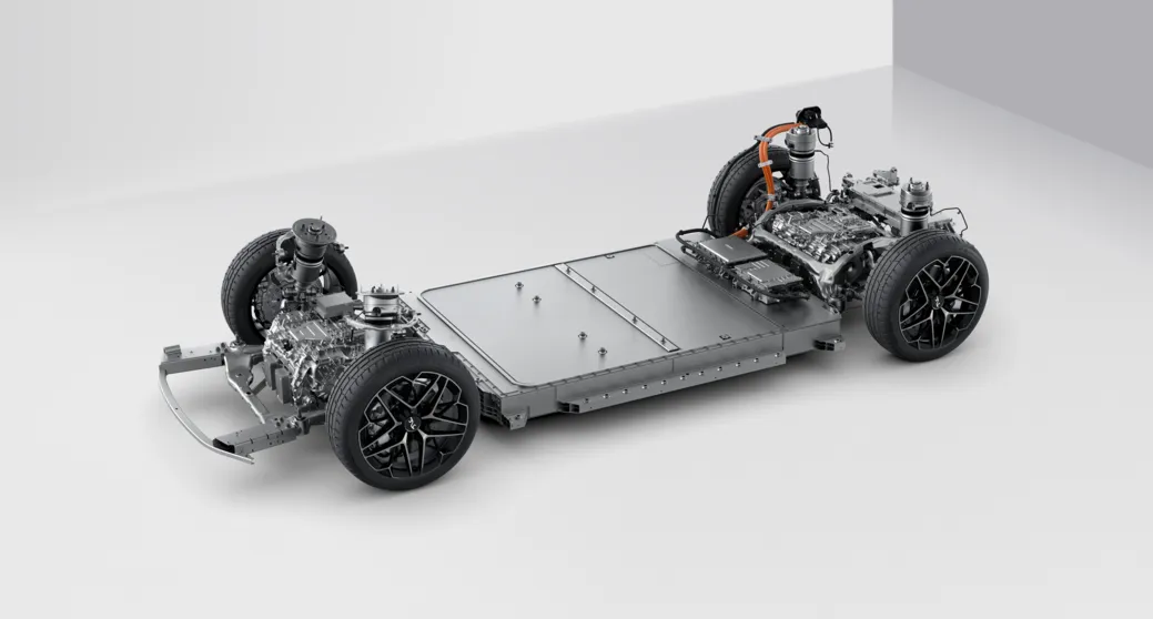 单个电机最大功率260kW,整车最大功率高达1360马力,为EV版车型带来了2.9秒的零百加速成绩和300km/h的极速能力。当然,易四方的价值远不止于狂暴的加速表现,其核心能力还在于通过易四方智算中心实时监控并调节四轮轮端扭矩,实现极致的横向和纵向车身控制。在高速刹停、紧急变道等复杂工况下,系统能够通过精确分配每个车轮的驱动力或制动力,主动纠正车辆的行驶姿态,从根本上避免转向不足或转向过度导致的打滑现象。这种主动式的安全操控,相较于传统ESP系统的事后干预,无疑是维度上的提升。