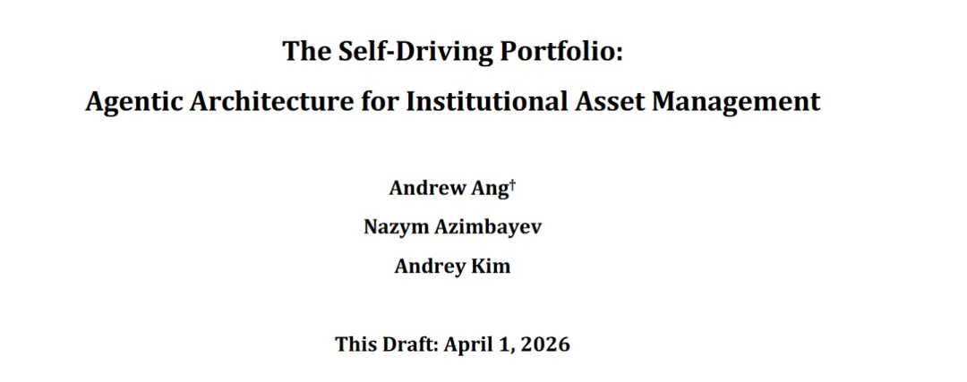 近日,前 BlackRock 高管 Andrew Ang 联手 Altbridge 的研究员 Nazym Azimbayev 与 Andrey Kim,发布了一篇研究报告:《The Self-Driving Portfolio: Agentic Architecture for Institutional Asset Management》。