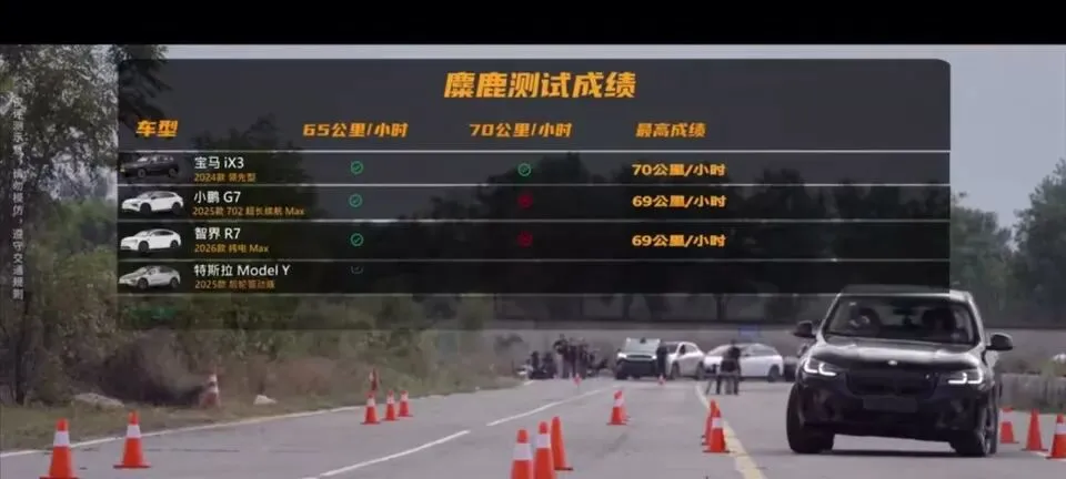 宝马iX3麋鹿测试第一。