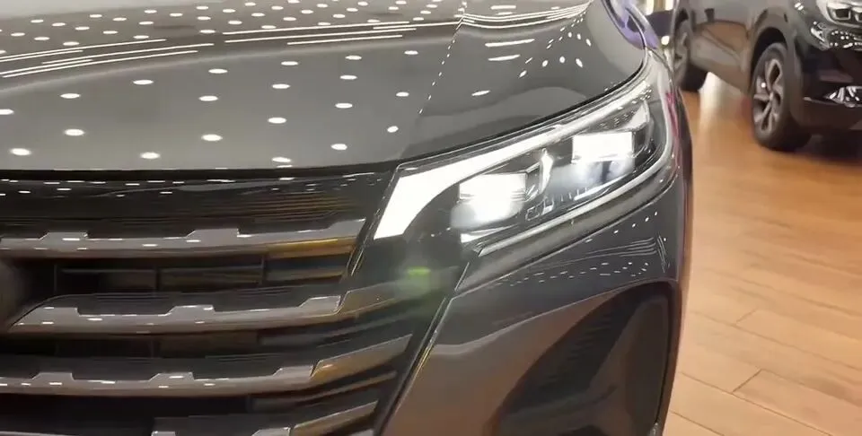 前脸是多幅式镀铬饰条设计,和两侧LED大灯组融合在一起。
