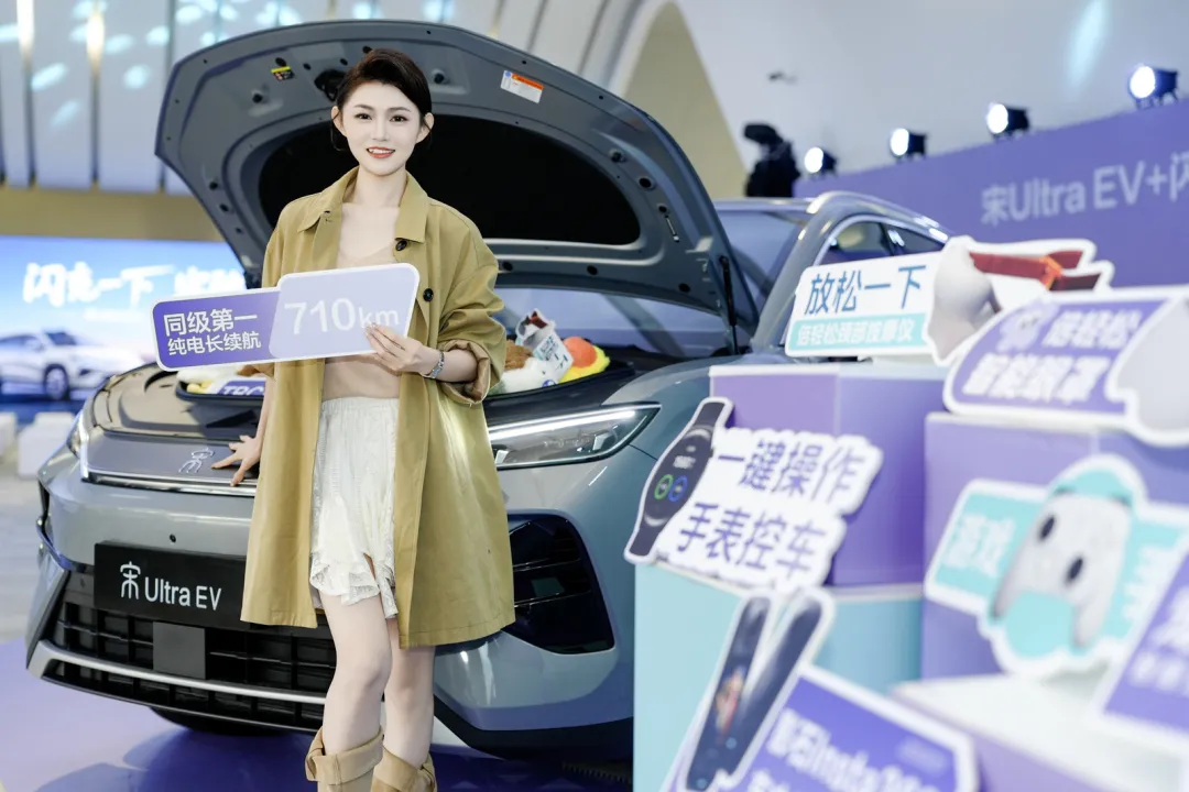 宋Ultra EV 搭载第二代刀片电池、闪充技术及激光雷达三大行业颠覆性技术。新车搭载的闪充技术带来出行新体验。常温下,5分钟电量告急秒“回血”,喝杯咖啡、刷会视频就能继续出发;9分钟从10%充到97%,节假日出行无需久留服务区。零下30℃也仅多3分钟。充电如加油,告别久等焦虑与规划,畅享纯电出行松弛感。现场特设一首歌的时间闪充体验区,嘉宾可现场直观感受,一曲唱罢,电量高效补能,闪充实力一目了然。不仅如此,比亚迪闪充桩的“闪充蓝”外观辨识度极高,成为充电站的独特风景。其功率达1500千瓦,充电速度远超同行,大幅节省时间成本。全球首创“滑轨悬吊式T型桩”,充电枪“轻而易举”,女生也能单手提起;充电线“干净整洁”,充电更加优雅从容。无感支付设计,可实现“即插即充,无感支付”。此外,全面应用的液冷技术,保障高温下稳定满功率输出,打造极致闪充体验。值得一提的是,如此快的充电速度并不会对电池造成伤害。第二代刀片电池历经“500次闪充循环后,边闪充、边针刺”等严苛实验,安全耐用。不仅如此,电池质保权益全面升级,容量低于77.5%免费包换,电芯终身保修,让用户彻底消除后顾之忧,尽情享受纯电出行的便捷与安心。宋Ultra EV可选装天神之眼B-辅助驾驶激光版(DiPilot 300),可以全方位感知复杂路况,即使在复杂路况下也能“耳聪目明”。天神之眼 5.0搭载最新大模型版本,在全闭环端到端的基础上,新增强化学习能力,打造行业领先的辅助驾驶体验。在领先的硬件和软件的协同赋能下,轻松实现路口自主过红绿灯、窄路从容调头、停车场稳稳泊车,还能应对极窄场景、复杂掉头,城区拥堵主动切换辅路,新手也能如老司机般从容出行。“三大越级”配置,全家出游尽享松弛感