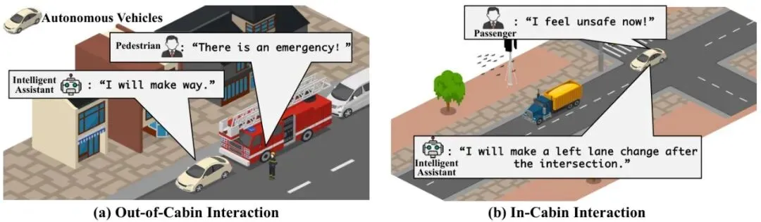 现有的车载交互系统(HMI),比如车道偏离预警、定速巡航,基本都是为有司机的车设计的。一旦进入L4/L5级别的完全无人驾驶,比如Robotaxi,后座乘客成了交互主体,那些给司机的闪光灯、方向盘震动提醒就完全没用了。自然语言,无疑是最直观的交互方式。“我觉得有点快”、“超过前面那辆慢车”,就像跟人说话一样。大语言模型(LLM)的出现,让机器理解这些模糊、开放式的指令成为了可能。但问题来了:听懂只是第一步,如何安全、可靠、可追溯地执行才是关键。你让LLM直接去控制方向盘和油门?这太危险了!LLM有“幻觉”,可能胡说八道,而且它的输出是概率性的,不符合汽车功能安全(如ISO 26262)对决策链必须透明、可追溯的严苛要求。图1:使用开放式语言指令的类人HMI。“开放式”指的是多样化的自然语言表达方式,就像图中乘客说的“我觉得不安全”、“请开到路边停一下”。挑战A:开放、模糊的“动作级”指令理解真实场景的指令千奇百怪,不像导航命令那样标准。如何让AI理解“我觉得不安全”可能意味着“请变道到左边更通畅的车道”?挑战B:高效的行为调度与切换一个指令可能需要一系列动作组合(如:减速、观察、变道、加速)。如何在动态交通中,根据实时反馈,流畅地调度和切换不同的驾驶行为?挑战C:缺乏高保真、闭环的评估工具现有研究多在公开数据集或游戏级模拟器上做“开环”测试,而真正的“闭环”测试(即AI决策直接影响模拟中的车辆,并接收新的环境反馈)在真实交通模拟中还很欠缺。论文给出的答案,就是下面这个让人眼前一亮的“调度为核心”的框架。LLM化身“超级调度员”