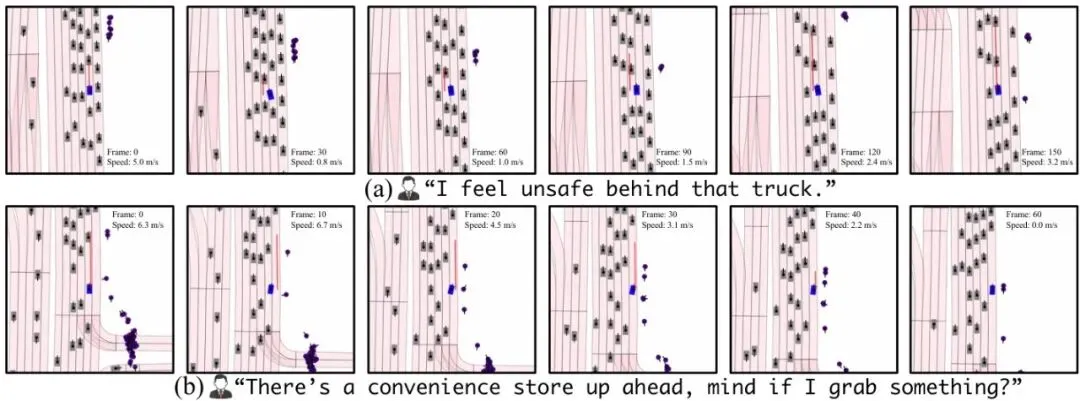 这种“解耦”设计带来了一个巨大的优势:透明的决策链。你可以清晰地追溯:乘客的“人话”指令 → LLM理解后生成的“行为序列”和“调度脚本”(人类可读)→ 调度器根据脚本和实时条件触发 → 特定的MPC规划器计算出轨迹 → 控制器输出控制信号。如果出了问题,工程师可以检查是LLM的理解有误,还是脚本的触发条件不合理,或是某个MPC规划器的参数需要调整。这种可追溯性对于通过汽车功能安全认证至关重要。同时,这也形成了一个内置的安全机制:无论乘客的指令多么冒险,或LLM的输出多么“幻觉”,最终执行动作的永远是那些经过验证的、安全约束内的原子规划器。乘客和LLM被放在了“决策环”内,但“控制环”是独立且受保护的。POINT基准:给开放式指令“出考题”