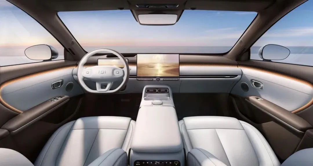 内饰没堆木纹、没塞香氛机、没装后排OLED屏。但座椅用的是母婴级亲肤材质,甲醛释放量实测0.003mg/m³;天幕是1.2㎡整块玻璃,带低辐射镀膜+电控调光,正午晒3小时,玻璃表面温度比普通天幕低22℃;B柱加宽+无框车门+隐私玻璃,关门声沉、风噪小、过隧道不耳鸣。