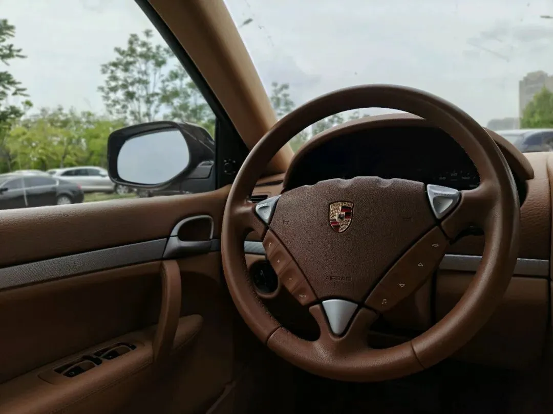 深棕色的车身在阳光下泛着温润的光泽,完美复刻了保时捷家族的运动基因。圆润饱满的大灯、贯穿式的进气格栅,还有引擎盖上那枚熠熠生辉的保时捷车标,每一处设计都在诉说着“豪华与性能并存”的品牌哲学。作为保时捷首款SUV,它彻底打破了“跑车品牌造不出实用SUV”的偏见,用极致的操控和顶级的豪华感,重新定义了豪华中大型SUV的标杆。