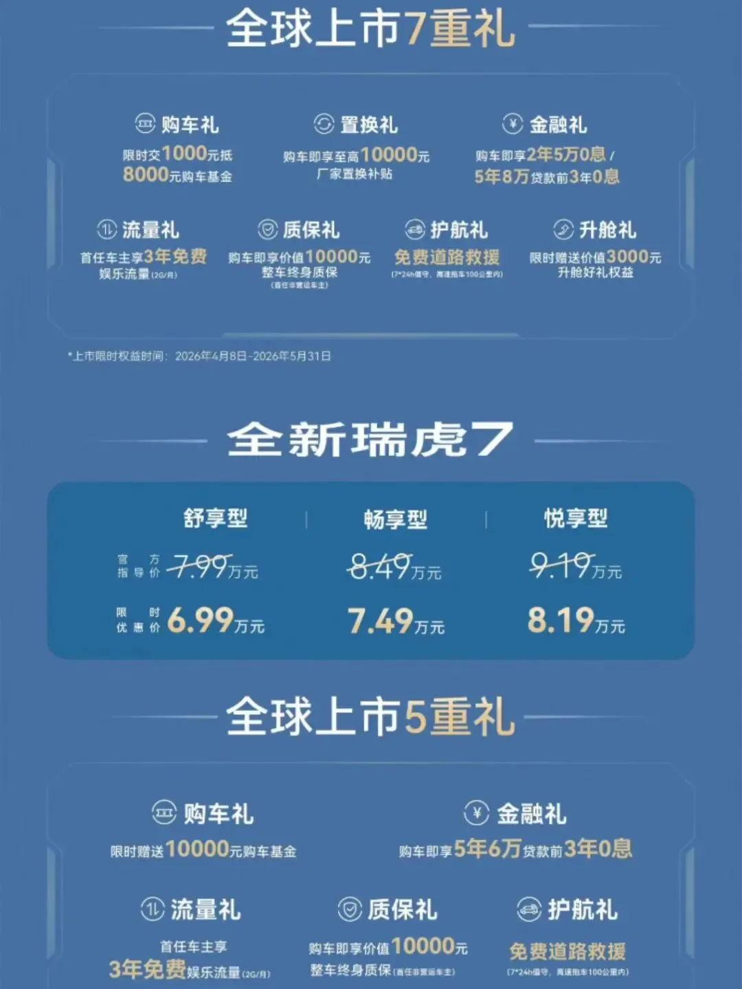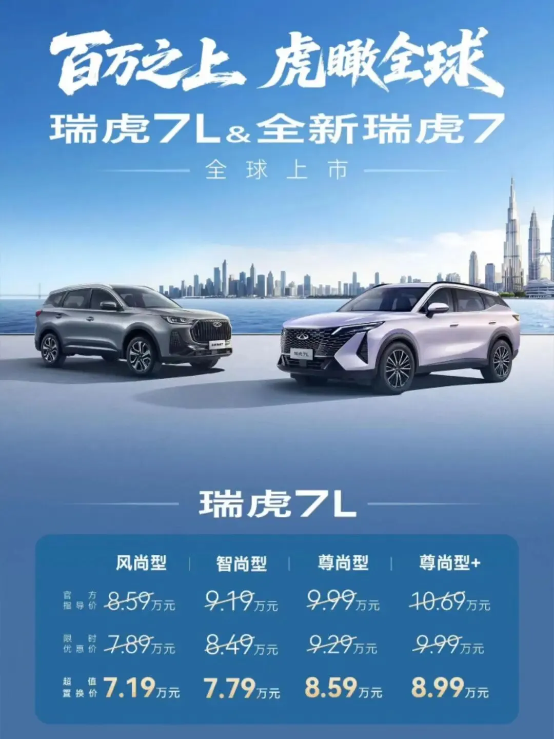 全新瑞虎7限时6.99万起,比老款起售价还低,配置全面升级;