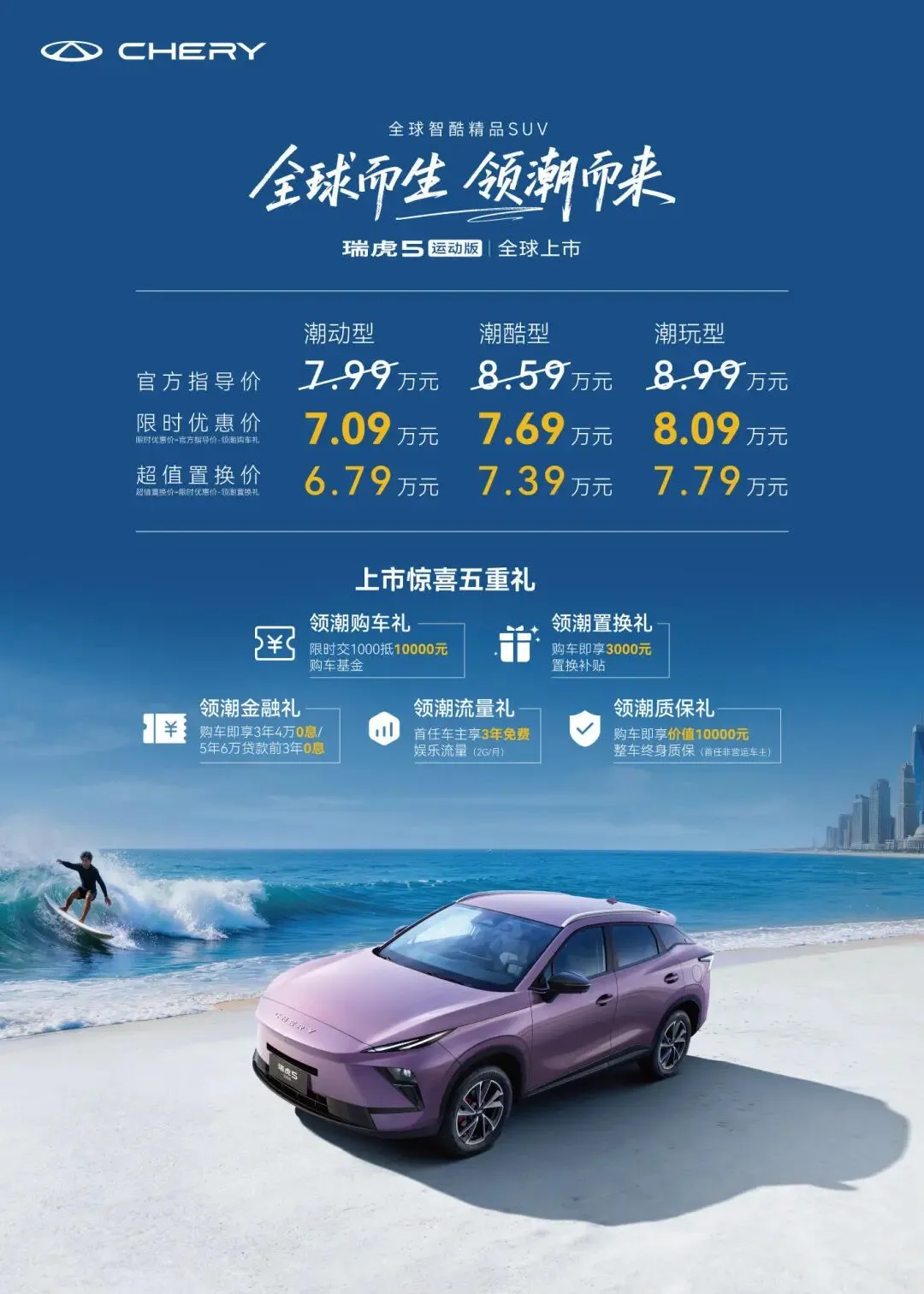瑞虎5运动版置换价6.79万起,把8155芯片、15.6英寸大屏、L2智驾拉到7万以内,同级唯一;