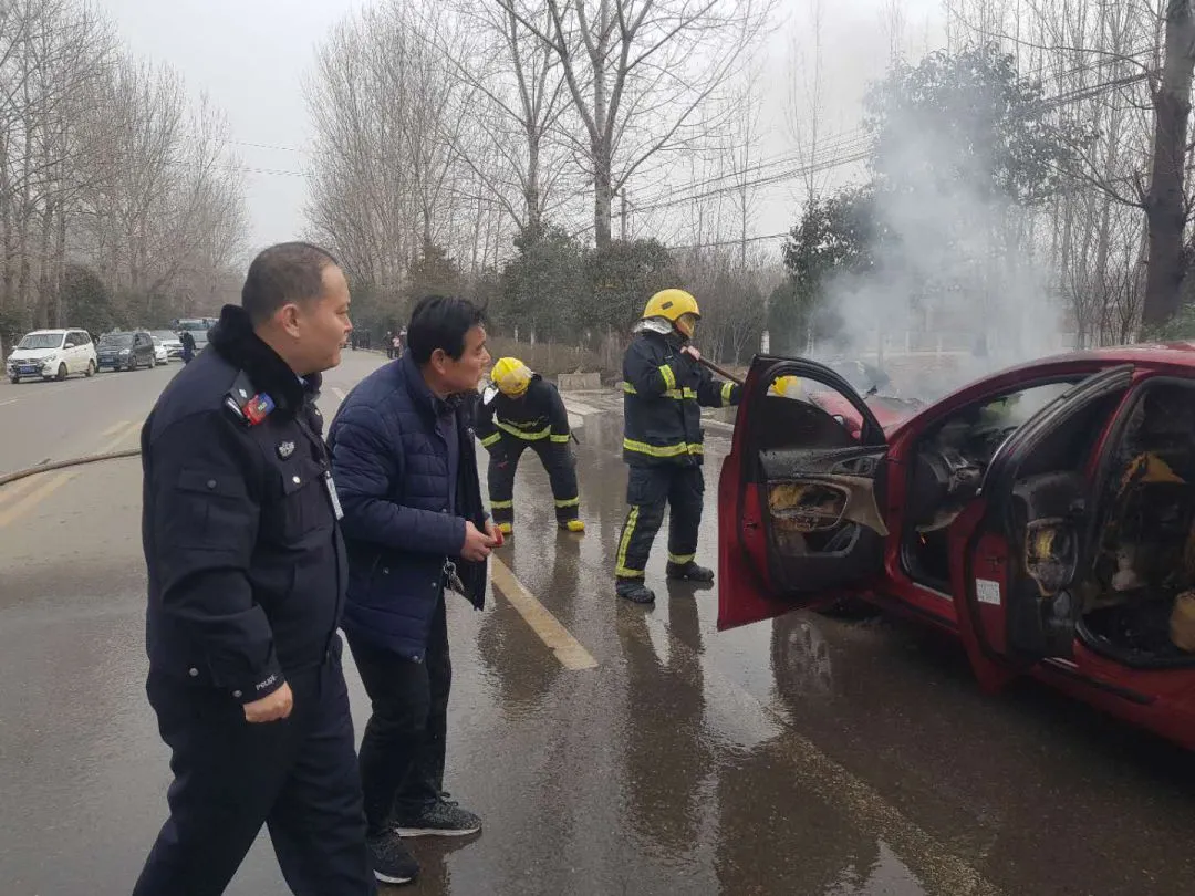 2月19日,一辆轿车行驶至新密市嵩山大道花卉市场附近时突然发生自燃,幸好民警路过,及时救援,有效控制了火情,所幸未造成人员伤亡和较大财产损失。