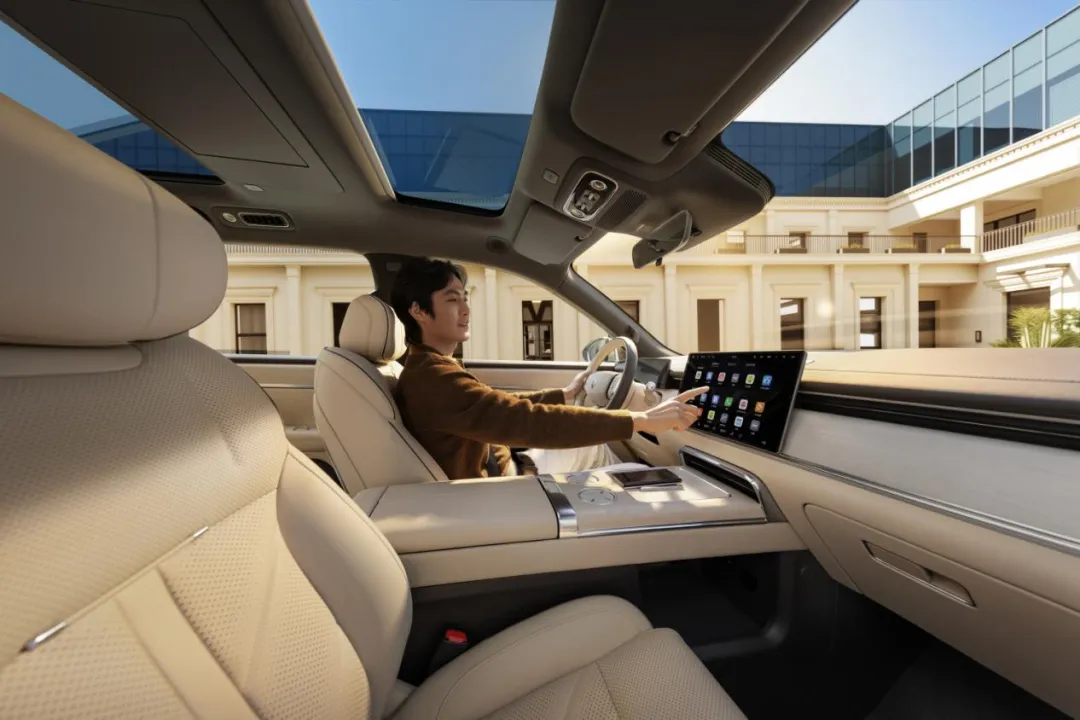 华境S的舒适配置清单上,8.8L冷暖车载冰箱、15.6英寸中排娱乐屏、哈曼Infinity 15扬声器穹顶音响、1680万色氛围灯、“一车三香”香氛系统等一应俱全。但真正体现功力的,是那些看不见的地方。